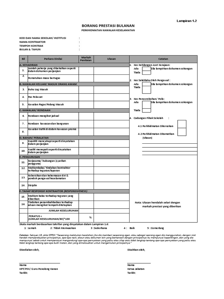 Borang Penilaian Prestasi Kontraktor Kbk Pkk Bmb Update 3 Pdf
